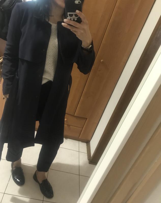 Стильний плащ/тренч на теплу весну і осінь. Довжина по коліно. Костюмів тканина, без підкладу. Кругла горловина, на спинці пелеринка. Є пояс. Дуже легка і зручна річ Стан ідеальний. Розмір S Звертайтесь, зроблю додаткові фото і заміри.