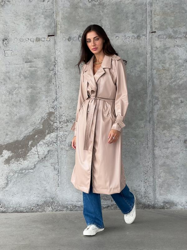 😍 НОВИНКА! Жіночий тренч з екошкіри. Арт. 38528 Ф. ▪️розміри: універсальний 42-46 універсальний 42-46 (ОГ 90-110, довжина рукава від плеча-62, довжина -110). ▪️ матеріал: екошкіра на трикотажній основі (Туреччина), без підкладки. ▪️ колір: чорний, бежевий, оливковий Підтримай українського виробника 💙💛