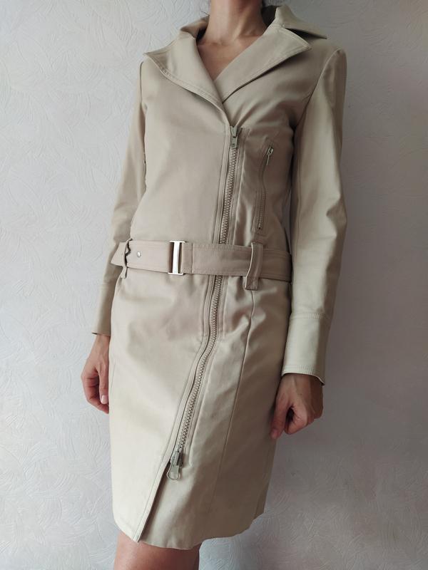 Заміри: довжина 90 см, довжина рукава 59 см, ширина під пахвами 46см, по талії 40см, стегна 49 см. Заміри виконані в застебнутому стані, тканина катон, досить щільна та тягнеться