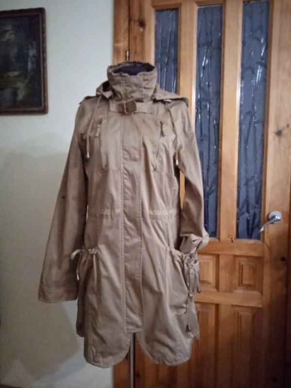 Довжина 89 см. Капюшон знімається. Напівобхват по грудям 51 см. Рукава 65 см. Плечі 40 см.