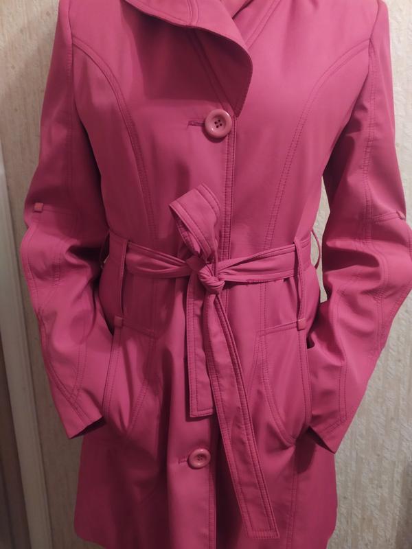 Дуже гарний і якісний плащ малинового кольору з капюшоном під поясок на підкладці, сумочка у подарунок