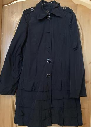 Плащик на утепленні з пояском на пряжці, з оборками по низу, дуже стильний. Довжина 85 см, в поясі По 36 см, довжина рукава 60 см. Є ньюанс - відсутні другий та третій гудзик зверху, тому знижую ціну. При купівлі вибираєте подарунок з відповідною позначкою.