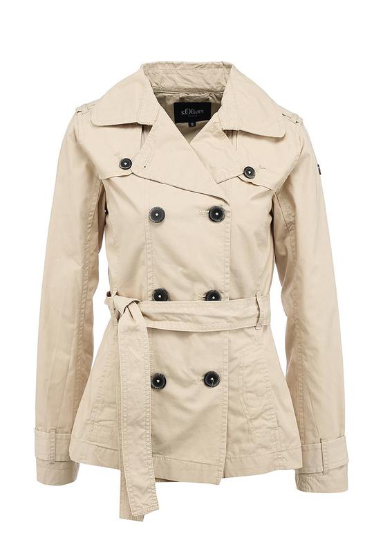 Укороченный плащ s.Oliver Denim {оригинал} выполнен из плотного хлопка бежевого цвета, гладкая подкладка. Детали: приталенный крой, двубортная застежка на пуговицы, боковые карманы, пояс в комплекте. Карманы на внутренних клепках, есть один внутренний карман и потайная пуговка.