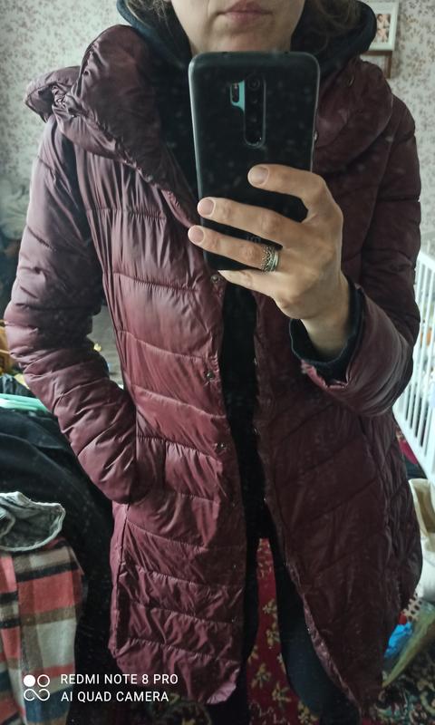 має, ледь помітний, дефект, ззаду на спині пляму, останнє фото, по бірцi вказано розмір L, але маломірить, орієнтуйтесь на заміри, ширина плечей 38см, пів обхват грудей 48см, рукав 63см, довжина 84см