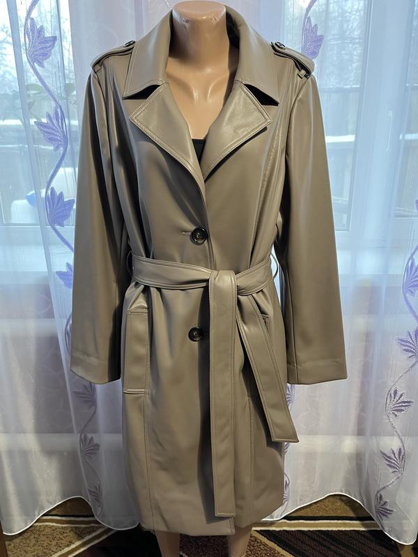 Плащ із кожзама Marks and Spencer. Відмінна якість. Насичений бежевий колір .Стан новий без бірки. Розмір 50-52.