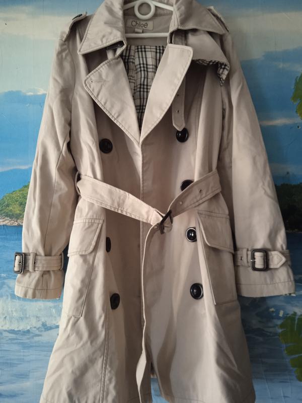 В наличии отличный плащ от бренда Chloe.красивый цвет беж, актуальный пошив .Длина до колена.