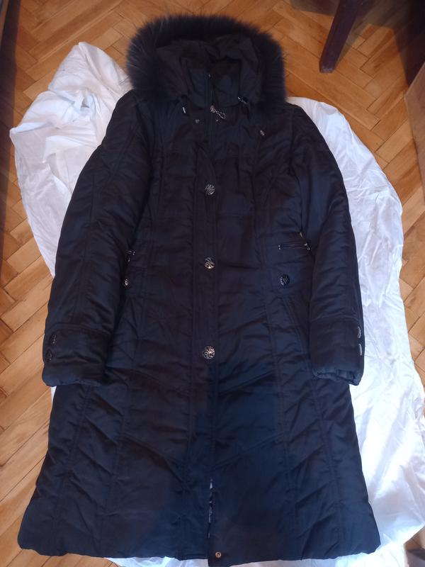 Дуже теплий плащ-куртка.Хутро натуральне.Мені вже вузьковато.Десь на 46-48 .Трошки внизу в замку відійшло(на фото видно) Але все застібається