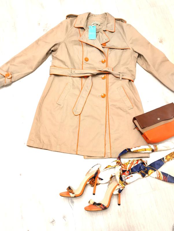 Женский тренч от премиального французского бренда Escandelle Paris. Размер указанный XXL, подойги на меньший, ориентируйтесь на замеры Длина 90. ПОГ 55. ПОТ 51. ПОБ 60. Длина рукава к вороту 75. Состояние нового, с бирками.