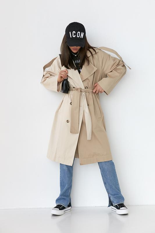 Капризкая меняющаяся погода весной и осенью будет вам не страшна с таким&****;модным женским тренчем&****;от ****** Он комфорт подарит, и образ стильно завершит. Эта двубортная модель идет на тонкой подкладке сверху и спереди застегивается на ряд пуговиц, возле которых пришит ряд декоративных пуговиц. Круглая горловина дополнена отложным воротником с острыми уголками. Длинные рукава реглан на плечах украшены длинными эполетами с пришитой пуговицей. Низ изделия прямой, с шлицей сзади по центру. Спереди на плаще расположены карманы с листочками, а в комплекте идет пояс тон, который можно завязывать на талию. Наш інстаграм - @************* - деталі🔥