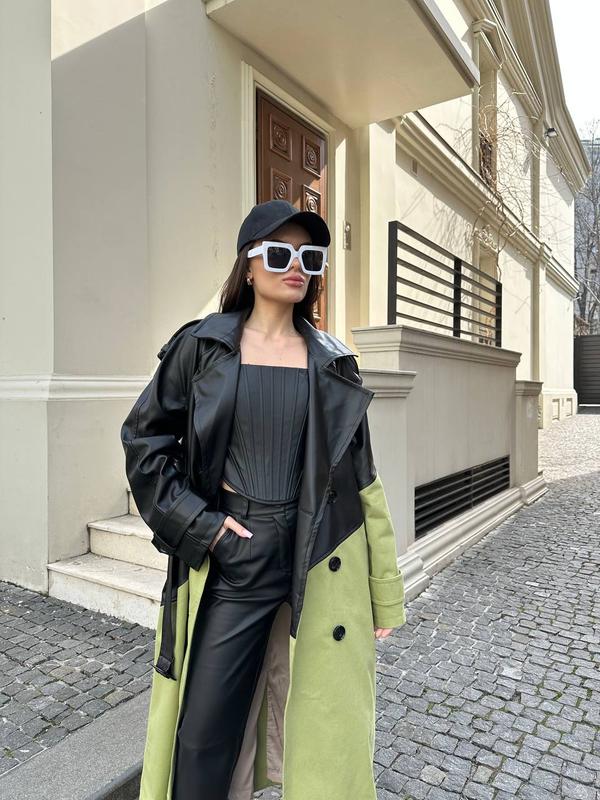 P 56 Комбинированный тренч из плотного коттона и экокожи На подкладке Размер : единственный 40-46