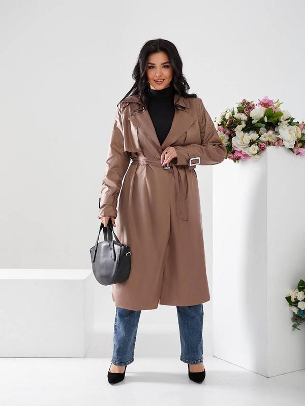 ⚜️145 св. мелн МОДЕЛЬ⚜️ТРЕНЧ - це яскравий приклад класики, яка актуальна у всі часи та сезони! ТРЕНЧ із водовідштовхувальної тканини на підкладці! Комірець на стійці, кокетки відлітні по переду і спині, шліца. Без застібки на запах, шльовки з боків, пояс із пряжкою! Втачні рукави із затяжним патом та пряжкою. ▫️РОЗМІРИ: (44-46); (48-50) ▫️ТКАНИНА: ПЛАЩІВКА ЛАКЕ+ підкладка віскоза ▫️КОЛЬОРА: чорний, капучино, молоко
