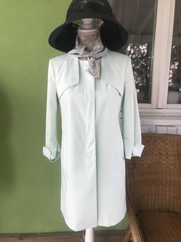 Легкий элегантный плащик от Pinko. Нежный мятный цвет, на легкой подкладке. Рукав-3/4, потайная застежка. Состав:хлопок/эластан(97/3). Размер по бирке 42, по замерам -S. Идеальнейшее состояние