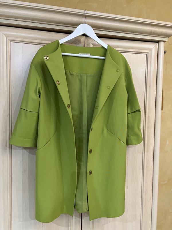 Плечи: 53 см Рукав опущений: 38 см Длина: 84 см Объем груди: 48 см Состав: 54% котон 43% полиэстер Состояние 10/10, одевала 1 раз