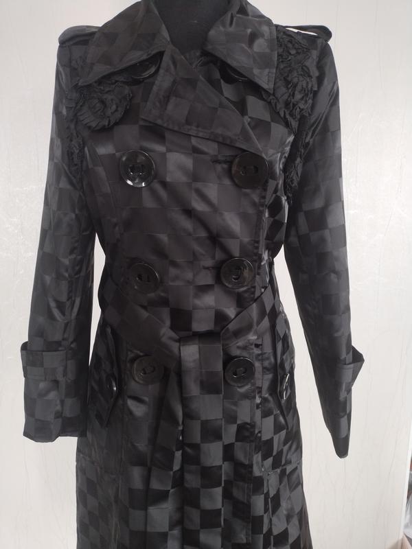 Плащ на пуговицах и поясе.черная клетка. Размер ХS - S.