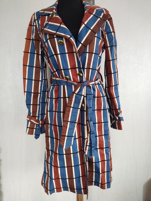яркий стильный плащ на пуговицах и поясе. Размер М.