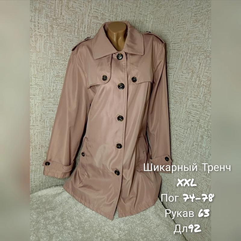 Очень классный тренч, приятного цвета, качественно пошитая, красивая ткань.Красиво смотрится на пышной красавице)Размер 54-58 возможно и больше смотрите замеры пожалуйста на фото.