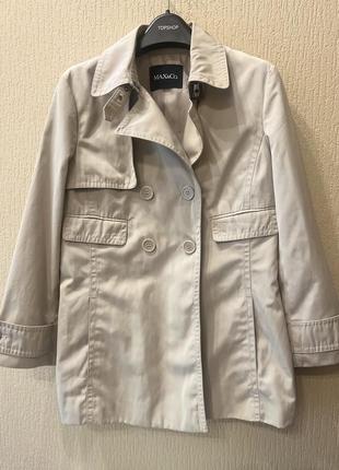 Классный двубортный песочный плащик. Оригинал. Ткань с водоотталкивающим эффектом, внутренняя бирка является, но от носки стерлась. Размер 40it. S Замеры: длина 70, ПОГ 47, длина рукава58. Состояние почти идеальное.