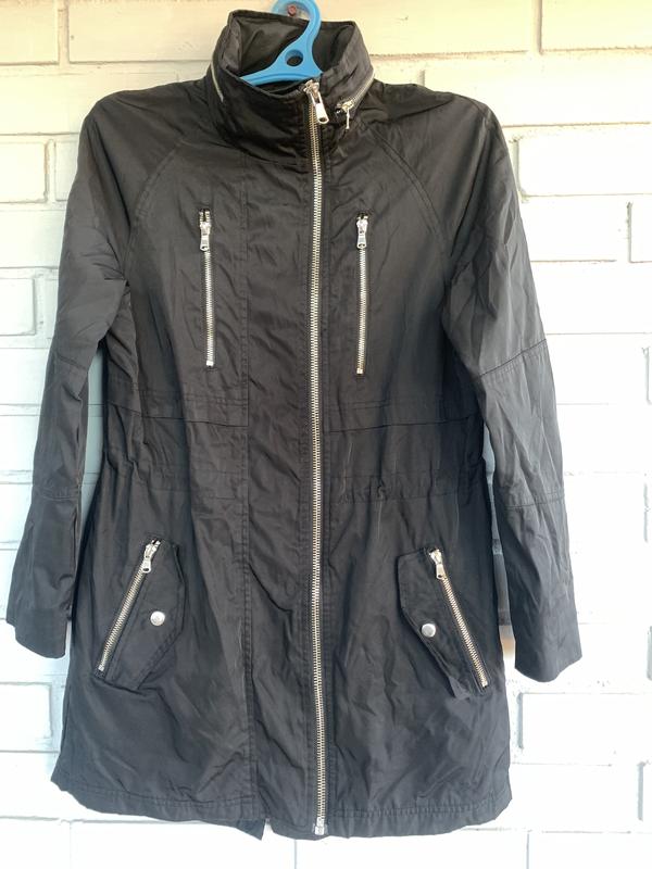 Женская легкая куртка-плащ в идеальном состоянии, без дефектов. Капюшон прячется в вороте. Ткань не промокает. Плечи 37см полуОГ 50см рукав 56см Пояс 49см (затягивается) длина 80см