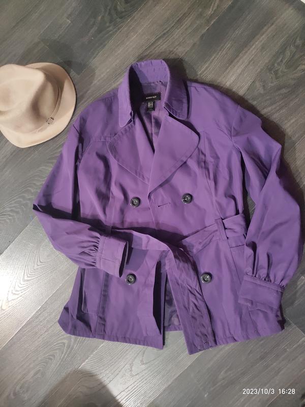 Плащ-ветровка Манго, густо- фиолетового цвета ,на пуговицах, есть пояс. Размер S. Идет и на 46, если небольшая грудь, в отличном состоянии. Пишите, отвечу в чате на ваши вопросы.