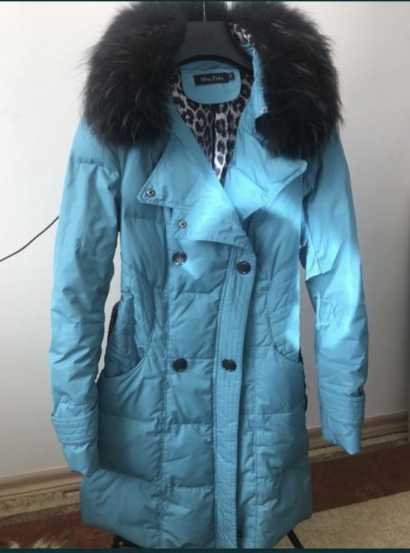 Зимовий плащ Наповнювач пух Застібається на замок і закльопки Дуже гарний насичений колір Довжина 82 Груди 45 Рукаві від плеча 58