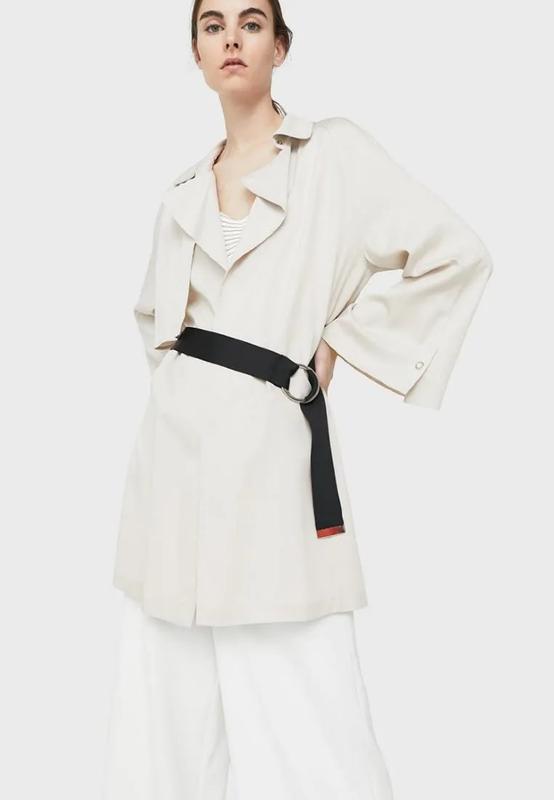 Стильный бежевый плащ – тренч Манго с расклешенными рукавами. Выполненный из хлопка, свободный фасон, спущенные плечи. На талии съемный пояс. Застежка на пряжку. Металлические шлевки. Лацканы. Воротник с застежкой на кнопку. Сзади застежка на пуговицы. Длинные рукава. 50% состоит из экологичного материала Lyocell. Это волокно производится из древесины эвкалипта. Лиоцелл - 100% Демисезоню. новый в наличии Л размер