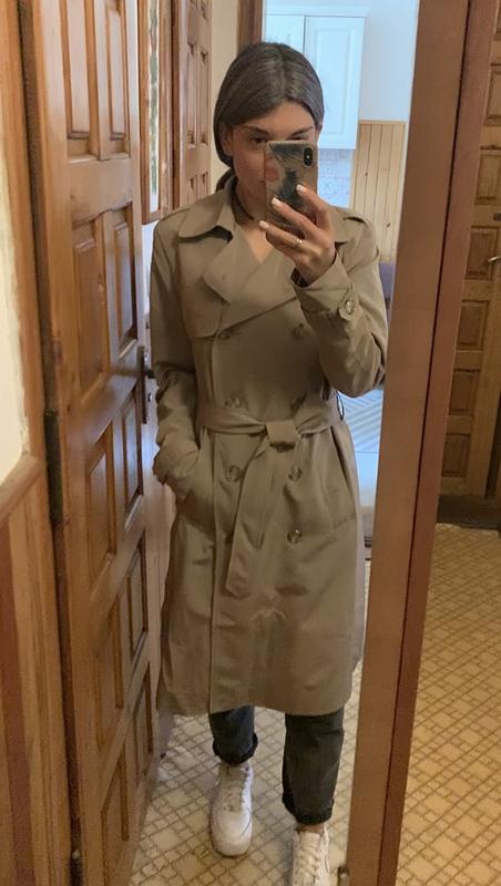 Стильная деталь осеннего гардероба. Подкладка повсюду целая и в хорошем состоянии. Размер М, ориентируйтесь по замерам (в защепленном на пуговицы состоянии): ПО под пашками - 47 см ПО талии - 44 см ПО бедер - 47 см Длина рукава - 60 см Плечо от воротника до рукава - 14 см Длина - 109 см Состав: вискоза, коттон, полиэстер. По бокам снизу на пуговицах, можно защелкать или носить расщепленным.
