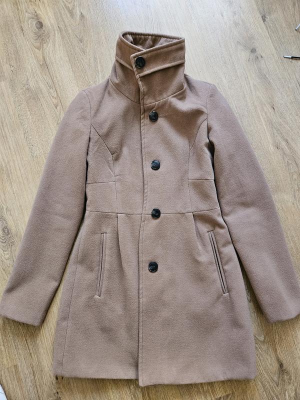 тренч с высоким воротничком, демисезонный с подкладкой и карманами, подойдет на S, M.