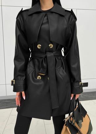 Тренч Некст укорочений Ткань: экокожа на замше, подклад - жаккардовая ткань; Состав: 94% полиэстер, 6% другие волокна, 100% нейлон Цвет: черный, мокко, молочный Размер: S- M, L-XL (размеры спаренные) Параметры модели на фото: Зріст: 170 см, ОГ: 86 см, ОТ: 64 см, ОС: 93 см. На фото представлена модель размер S-M (42/44). Фактические замеры по изделию: ОГ: S-М-100; L-XL-108; ОТ: S-М-103; L-XL-111; ОБ: S-М-106; L-XL-114; Объем рукава сверху: S-М-42; L-XL-45; Длина изделия по спинке: S-М-84; L-XL-86; Длина рукава от шеи: S-М-74; L-XL-74;
