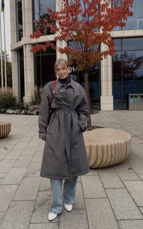 Серый тренч KEMPEL имеет легкий наполнитель, за счет чего выглядит более объемным и подойдет на более холодную погоду Размер не указан, ориентируйтесь на замеры: общая длина -117см длина рукава от плеча (спущенное)-59см, от воротничка -74см Плечи -51см