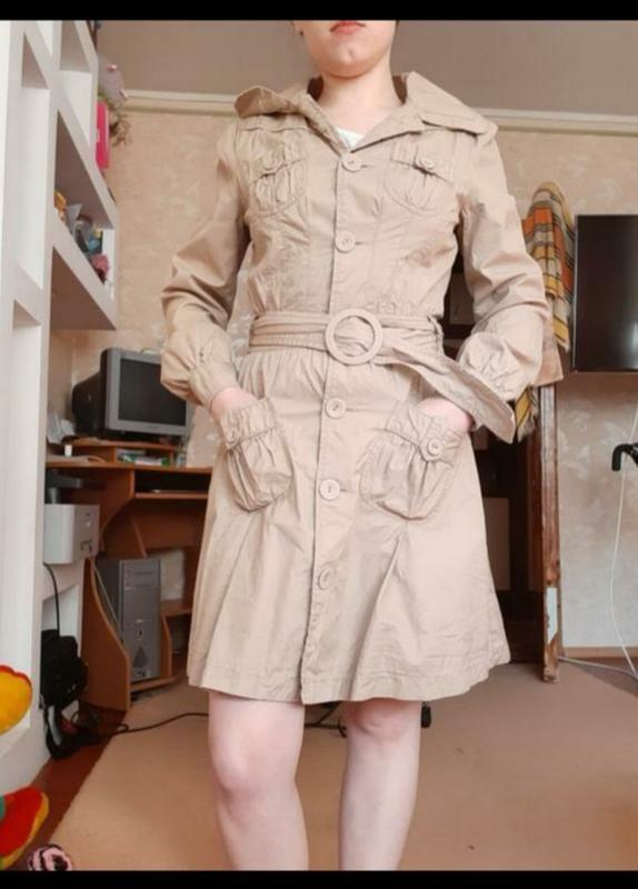Продам свой плащ. Носился мало, после родов стал мал. Мои параметры на фото 89-68-93, но в талии очень вплотную, в других частях свободно. Подойдет на талию до 64 см, лучше меньше. Выстиранный, но не поглаженный. После глажки будет выглядеть лучше. Существенных дефектов нет, но местами торчат ниточки и потерялся верхняя пуговица. Покупался в фирменном магазине.