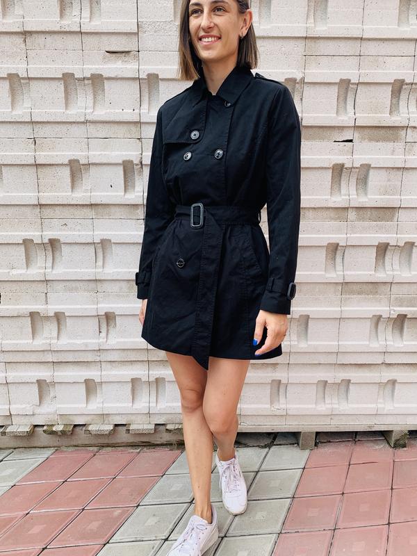 Универсальная вещь в гардеробе, классический черный тренч на пуговицах, под пояс. Вещь новая, с биркой. Рост модели 170