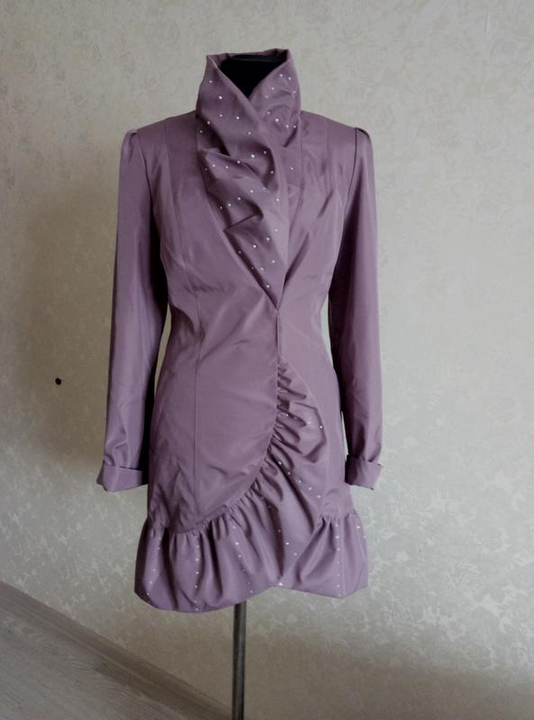 новый красивый очень нарядный плащ цвет дикая сирень с камнями сваровски в наличии