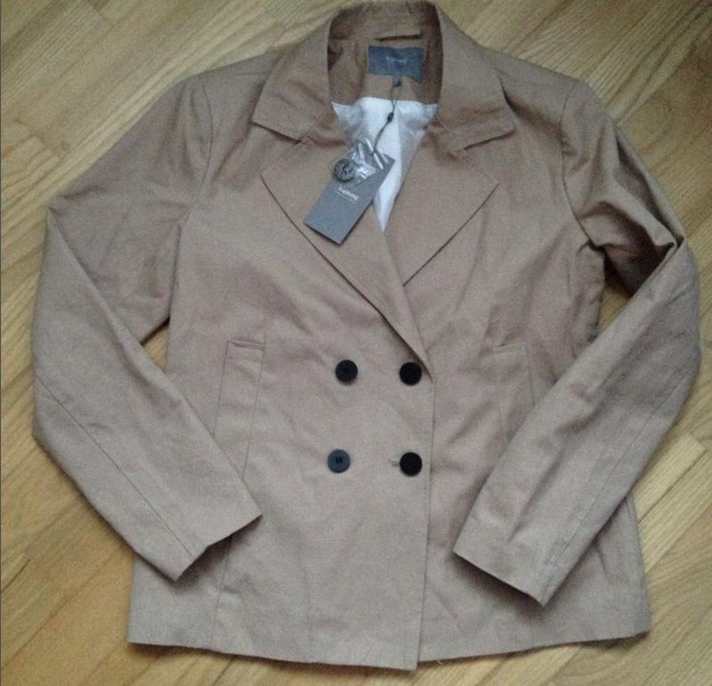Тренч с подкладклй двубортный Карманы Плотная ткань Длина по спине 65 см Объём груди 112 см Рукав от плеча 63 см