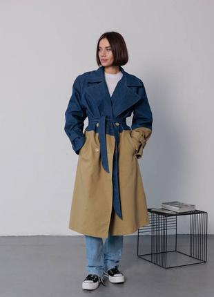 ❗На странице есть БОЛЬШОЙ АСОРТИМЕНТ другой одежды по ДОСТУПНЫМИ ЦЕНАМИ🤗❗ ◾Есть обмен 💳 После платья с мин. подпиской ▪️Тканина: джинс ▪️размер: универсальниц ▪️Цвет: песок / джинс ✅Ярким трендом сезона 2024 года стали комбинированные двухцветные джинсовые плащи в контрастном сочетании. 💠Замеры: грудь 120 см длина 114 см рукав с плечом 76 см стегна 128 RUS554150