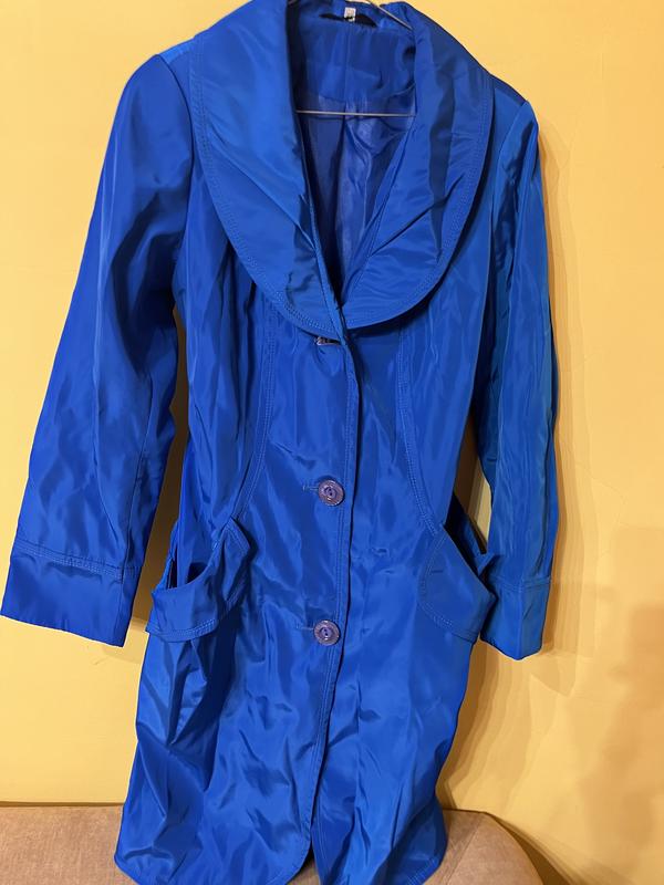 Плащ женский невероятно красивого василькового цвета, придаст красок вашему образу