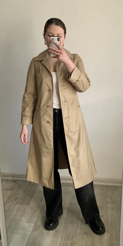Тренч бежевого кольору Розмір 36 S Довжина 109 см, ширина плеч 38 см, довжина рукава 57 см, напівобхват грудей 45 см, напівобхват стегон 51 см Стан ідеал Вдягнуто на розмір Л, зріст 167