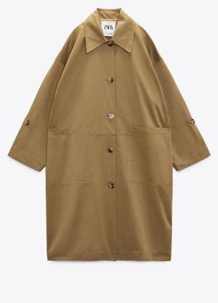 Одягався 1 раз Бренд: Zara original Spain Новий, з бірками, рецептами та цiнником Колiр: Бронзовий | 2731/069 Тренч оверсайз iз змішаної бавовняної тканини з акцентованими швами, лацканами та довгими рукавами Застібається на ґудзики спереду Накладні кишені спереду Склад: 64% cotton 28% poliester 8% poliamid