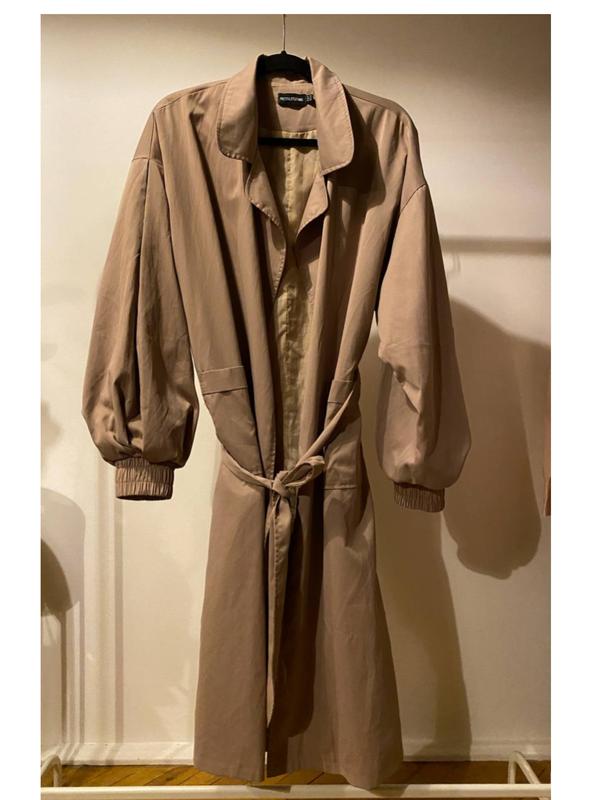 Тренч PLT на подкладке с объемным рукавом, умает пояс, без пуговиц,размер 10 (38),100 полиэстер,сток