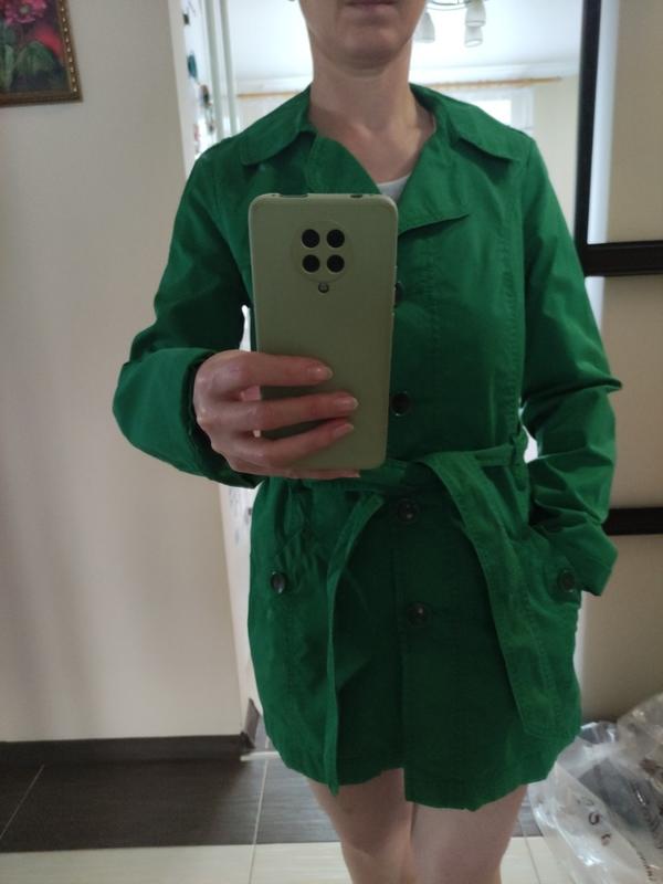 плащик укороченный с воротником и 2 карманами, красивого изумрудного цвета и отличного натурального качества в идеальном состоянии, без недостатков, 44-46 размера