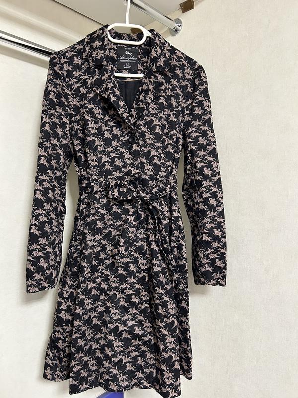 Новий плащ з цікавим принтом. Плечі трохи в зборку) Довжина 96 Рукав 62 Обʼєм в грудях 49 Талія 39