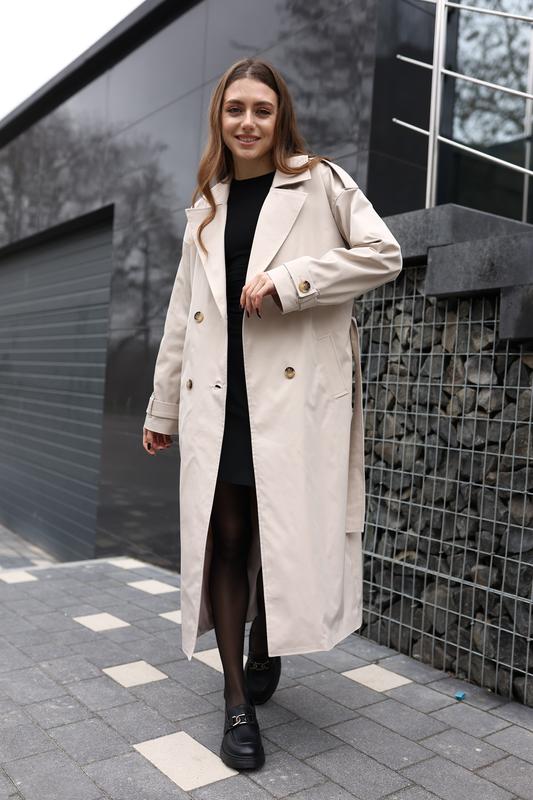 Котоновий тренч у класичному бежевому кольорі. Довжина 120 см. До 8 градусів. Розмір: L, XL