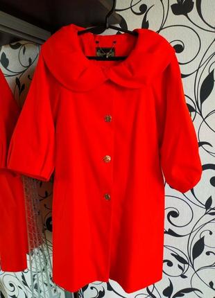Состояние нового. Качество шикарное, пошив отличный. Красивый крассно-морковный цвет (на фото получился немного ярче, чем в реале). Рукав 3/4, крой свободный. Застёгивается на кнопки. Размер S.