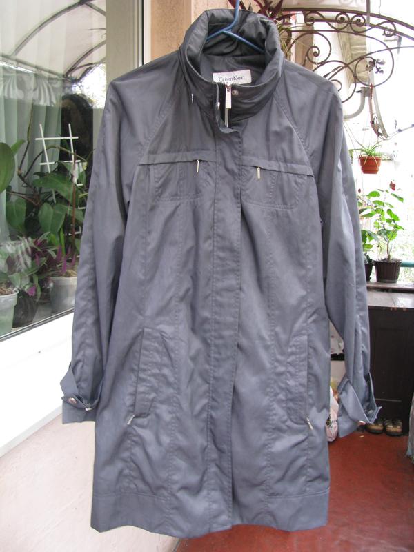 Плащ Calvin Klein в хорошем состоянии. Сзади есть капюшон, складывается. Застегивается молнией и заклепками. Размер: М Длина 86см, ворот 9см. Плечи приблизительно 46см. Под руками ПО 53см. Рукава приблизительно 62см.