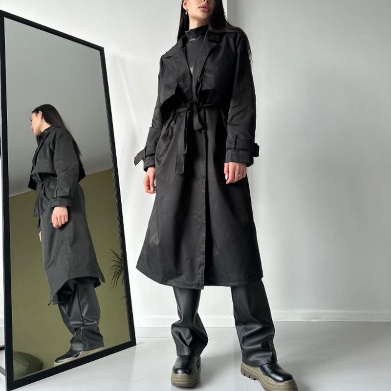 #Тренч Артикул: 678-377 Цвет: черный, мокко, темно-синий Размер: универсальный (42-46) Материал: коттон мемори (Турция)+ подкладка (качественная)