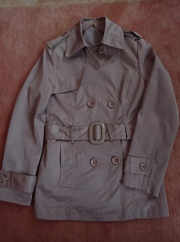 Трендовый тренч весенний (короткий). Размер М. Бежевый цвет. Без дефектов. Замеры ( длина рукава - 62 см, длина тренча - 77 см, ширина подмышками - 46 см).
