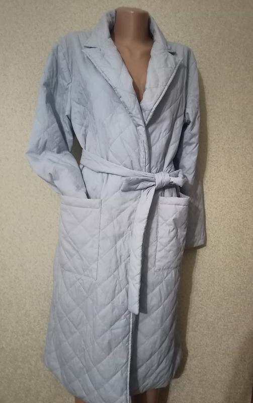 Плащ, стёганый, нежно голубой цвет.под пояс. состояние идеальное.Замеры на фото.