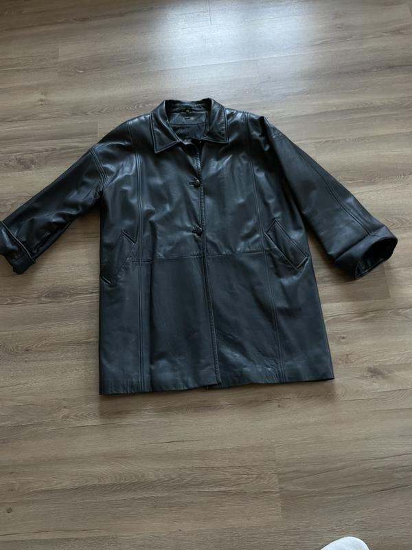 дубленка / манто / кожаная / кожаный плащ большого размера Выполнен из натуральной кожи Замеры: Длина по спинке 95 см Рукав от плеча 80 см Груди ~ 140 см Талия ~ 150 см Низ ~ 160 см