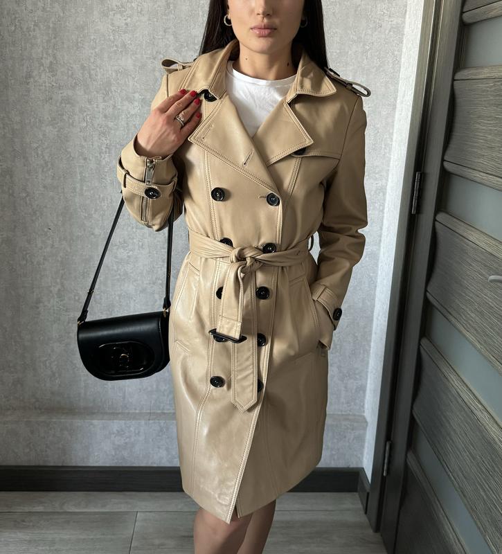 Тренч на рост 163-165 см. Размер S. Кожа, хорошее качество. На рукавах есть небольшие потертости (на фото)