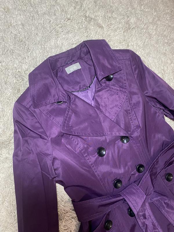 двобортний тренч з кишенями під пояс щільна плащевке - 55 поліестер, 45 коттон дуже гарний колір-баклажан - на фото яскравий пог 50 см пот 45,5 см побіди на рівні кишень 54 см(+-) плечі з підплічниками 40 см довжина 96 см рукав 62 см, заходьте на мою сторінку, знайдете багато брендових якісних речей за доступними цінами