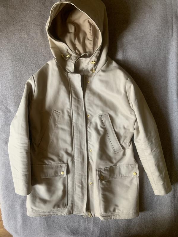 Бежева куртка ,плотний котон,талія регулюється,зручні кишені,капюшон глибокий,гарний стан,на с-м